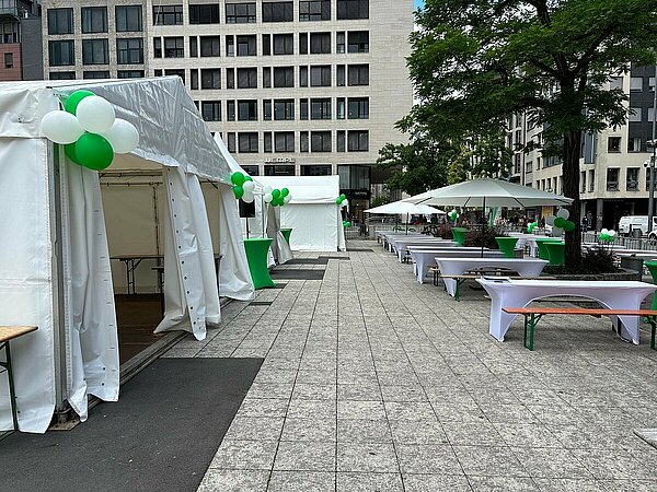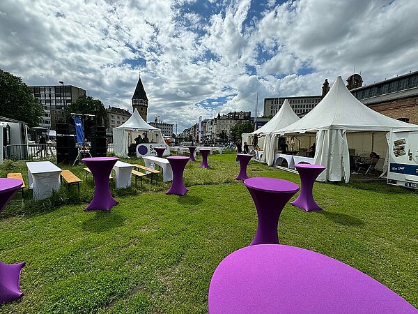 Motivierte Sportkolleg:innen, die in den Farben ihres Unternehmens antraten und den Teamgeist feierten. Sie freuten sich, dass sie mit allem versorgt wurden, was sie brauchten: von allen notwendigen Informationen für den Lauf über erfrischende Getränke und kulinarische Angebote bis hin zu einer tollen Party in bester Gesellschaft.