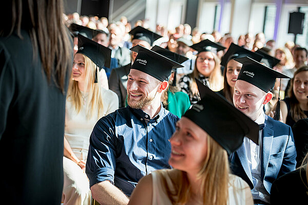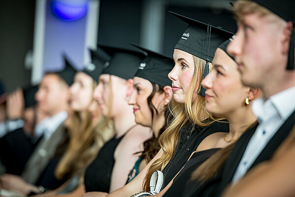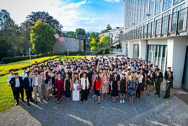 Die Feier war eine Fahrt auf der Achterbahn der Gefühle für alle, die in den letzten Jahren eine anspruchsvolle Kombination aus Studium und praktischer Arbeit gemeistert haben. Fiebrige Vorfreude auf das, was kommt. Aber es war auch zu spüren, dass eine schöne gemeinsame Zeit voller Herausforderungen zu Ende geht. Bleibt die Hoffnung, dass gewonnene Freundschaften ein Leben lang halten. Mit von der Party waren Familien, Freund:innen und Mentor:innen der frisch gekürten Akademiker:innen.