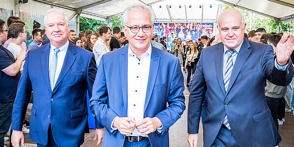 Erneut prominenter Besuch auf dem Provadis Campus. In diesen Jahren waren zunächst Hessens Wirtschaftsminister Tarek Al-Wazir bei der Begrüßung des Azubi-Jahrgangs 2022 zugegen. Kurz danach verabschiedete der Hessische Ministerpräsident Boris Rein den Abschlussjahrgang 2023.