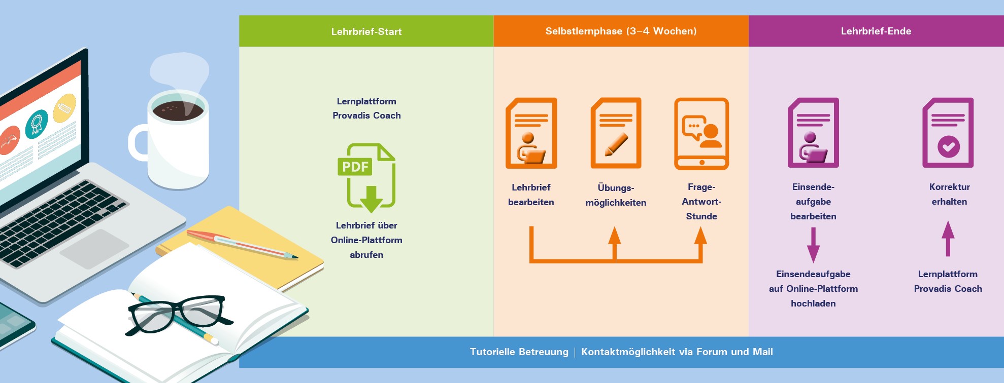 Die kursinterne Internetplattform “Provadis Coach” sowie ein virtuelles Klassenzimmer bieten Ihnen zielgerichtete Kommunikationsmöglichkeiten untereinander und stellen einen regelmäßigen und intensiven fachlichen Austausch mit unseren praxiserfahrenen Tutorinnen und Tutoren sicher.